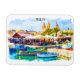 Stylish Watercolor Malta Mediterranean magnet featuring a panorama view over a harbour of this popular travel destination. Great souvenir and gift idea for every tourist who enjoyed the vacation of this beautiful island.
