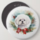 Maltese Christmas Wreath Festive Pup 6 Inch Round Button