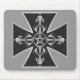 Black Maltese cross features a silver pentagram centre that is surrounded by 4 swords with flames.