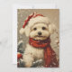 Warm holiday wishes come wrapped in adorable charm with this Christmas card featuring a delightful Maltese dog donning a festive Santa hat. The whimsical image captures the spirit of the season as the furry friend adds a touch of festive cheer. Send your loved ones a heartwarming greeting, as this endearing canine companion spreads joy with its holiday flair. Share the magic of Christmas with a card that combines the festive spirit and the irresistible charm of man's best friend.