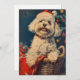 Sending festive cheer your way! This Christmas card features an adorable Maltese dog, adorned with a merry Santa hat. The fluffy white fur of the Maltese complements the jolly red hat, creating a heartwarming scene that captures the holiday spirit. Share the joy of the season with this charming card, as this festive pup is ready to spread smiles and warm wishes to your loved ones.