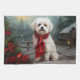 Amidst a winter wonderland, a playful dog enjoys a snowy Christmas morning, leaving adorable paw prints in the glistening snow. Their joy and curiosity add warmth to the enchanting holiday scene, making it truly magical.