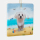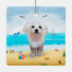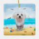 Maltese Dog on Beach Ceramic Ornament