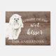 Funny beware of the wet kisser" Maltese Dog door mat set on a rustic faux background. Visit our shop to view a large assortment of dog breads