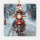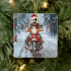 Maltese Dog Riding Motorcycle Christmas Ceramic Ornament