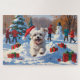 Maltese Dog Running in Snow with Christmas Hat Jigsaw Puzzle