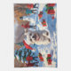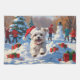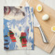 Maltese Dog Running in Snow with Christmas Hat Kitchen Towel