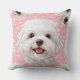 Maltese poodle dog pattern vector illustration. Cute white Maltese face on pink background
