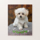Maltese Puppy with Christmas holly Jigsaw Puzzle