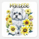 Maltese Small :White Dog Bree in Yellow Flowers Square Sticker