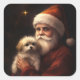 Maltese With Santa Claus Festive Christmas Square Sticker