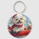 Malti Tzu Dog in Sledge Let it Snow Christmas Keychain