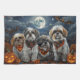 Unleash the spooky spirit with this eerie Halloween design featuring a pack of dogs under a dark, moonlit sky, surrounded by flying bats and glowing pumpkins. Perfect for those who love a touch of frightful fun with their furry friends!