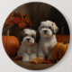 Malti tzu Puppy Autumn Delight Pumpkin 6 Inch Round Button