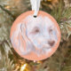 Ce petit Maltipoo blanc au visage sucré est capturé dans des pastels doux sur un papier chaud couleur terre cuite orange.