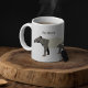 This mug is ready to be customized with a name or other custom text. It features my realistic style illustration of a Malayan or Asian tapir in charcoal grey and cream with your name above the animal graphic in coordinating grey lettering. The illustration and text appear on both sides of this mug.