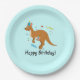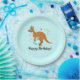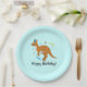 Mama and Baby Kangaroo in Birthday Hats Paper Plate