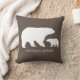 Mama and baby bear throw pillow for nursery decor. On the back of the pillow has a white polka dot pattern on a brown pillow.