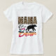 A Mama bear can be fierce and pretty as she strolls through a field of colourful wildflowers. Great gift for the mama of the house. This Mama bear tshirt features a mama bear with 2 cubs surrounded by mountains and a forest of trees, representing the loving bond between mother and child.