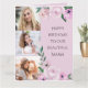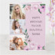 Say Happy Birthday to your beautiful mama with a pretty floral photo card. This birthday card can be personalized with 3 of your favorite photos and you can also edit the wording on the front and the message inside. It currently reads "Happy Birthday to our Beautiful Mama" and you can edit this to Amazing Aunt or whatever you wish. A pretty design with elegant typography and watercolor flowers in shades of pink on a pink background.
