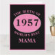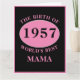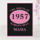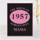 Wonderful any year "Birth Of World's Best Mama" pink and black large birthday card. Add the year, initial , name unique message, plus other details as desired in the template fields creating a unique 40th, 50th, 60th or any birthday celebration card.