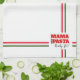 You don't have to be Italian for this kitchen towel. If you love pasta, and who doesn't, this towel is for you. Designed with a big, bold type font and a delicate script font, the message asks...MAMA is the PASTA Ready Yet? The red and green ruled lines form an accent.