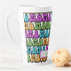 Happy Mother's Day or celebrate MOM with this personalized this latte mug. Fun whimsical MAMA letters in a variety of colours decorate this latte mug, which can be personalized.