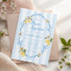 This beautiful baby shower invitation captures the spirit of the Amalfi Coast with cheerful lemons, soft blue bows, and a crisp striped background. The blue frame adds a touch of sophistication, making it ideal for a gender-neutral or baby boy shower. A sweet and stylish way to invite loved ones to your upcoming celebration.