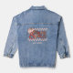 Women's Denim Jacket with pink pumpkin, text mama spice and chequered details in pink and burgundy shades with retro vibes. Easily personalize the text under the picture or leave it blank - Kate Eden Art