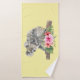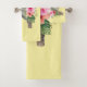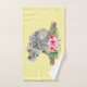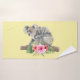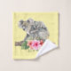 Serviettes à l'aquarelle adorable. Koala ours maman et bébé. Le bébé roule sur le dos de maman. Sur une branche d'arbre. Un bouquet de fleurs d'hibiscus en contrebas. Arrière - plan jaune banane.