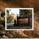 A classic stone and log park entrance sign welcomes visitors to Mammoth Cave National Park, Kentucky.