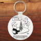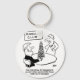 Funny modeling club key ring. Man at a modeling club has built a model of the Eiffel Tower out of sausages. Surreal cartoon by UK cartoonist Nigel Sutherland.
