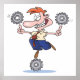 A funny man standing on a cog while balancing cogs. This design looks really effective on this Poster