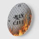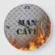 Man Cave Diamondplate Metal and Fire Wall Clock