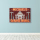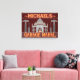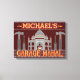 This funny, personalized wall canvas is perfect for decorating your man cave. It says, "[Your Name] Garage Mahal" and shows an outline of the Taj Mahal with hammers, screwdrivers and a little car that looks like it's parked in the middle. Easily add your name to the top. The colours are red, grey and bright orange.