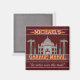 This funny, personalized square magnet is perfect for decorating your man cave fridge. It says, "[Your Name] Garage Mahal" and shows an outline of the Taj Mahal with hammers, screwdrivers and a little car that looks like it's parked in the middle. Easily add your name to the top. The line "he rules over the tools" can also be altered. The colours are red, grey and bright orange.
