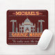 This funny, personalized mousepad is perfect for the computer in your man cave. It says, "[Your Name] Garage Mahal" and shows an outline of the Taj Mahal with hammers, screwdrivers and a little car that looks like it's parked in the middle. Easily add your name to the top. The line "he rules over the tools" can also be changed. The colours are red, grey and bright orange.