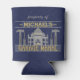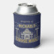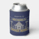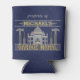 This funny, customized can cooler is perfect for your man cave. It says, "property of [Your Name] Garage Mahal" and shows an outline of the Taj Mahal with hammers, screwdrivers and a little car that looks like it's parked in the middle. Easily add your name. The colours are blue, grey and golden yellow, and the design repeats on the back.