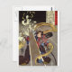 This colour print was created by the famous Japanese artist Utagawa Kuniyoshi in the 19th century. It's titled: "A man confronted with an apparition of the Fox goddess". Many of Utagawa's prints were themed around ghosts, apparitions and spectres. I'm not sure who the man in the print is, but he's probably a samurai (Japanese warrior). He's shielding his eyes with one hand while holding a long bow in the other. His kimono (clothes) are very colourful, and he's also draped in some kind of fur. Utagawa has signed the artwork (and perhaps written a few sentences) in Kanji characters and Hiragana (Japanese writing).