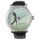 * Man's Watch With a Black Leather Strap. * Golf - Man Golfer Golfing with a Green Rolling Hills Background . *