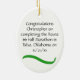 I was disappointed with the writing on the ornament. It’s just too small and can barely be seen. Also it was not as obvious on screen that the position of the hole for hanging was centered on person’s forehead. Writing that came with chosen frame is too small and can barely be seen.