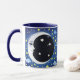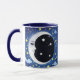 Mug in a playful, mystical, serene, man-in-the-moon, glowing against a background of stars and nocturnal clouds