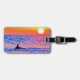 orange and blue luggage tag of man watching the sunset from the ocean by bizeeboy