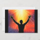 At the heart of this invitation is a stunning graphic featuring a man with his arms raised toward the sun. This powerful imagery conveys a sense of hope, positivity, and a connection with the natural world. The warm, golden rays of the sun illuminate the design, creating a feeling of brightness and optimism.