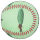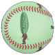 This custom softball has a man with a big green pickle for a head with a face dressed in a brown suit on a light green background. Customize your text with the template.