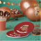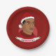 Paper plates with illustration of a African American or Hispanic man with short black hair and red Santa Claus hat; in red circle on a red background, with customizable text template for your name or message