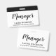 A modern script typography title business badge for a manager. Add your name and company name or region.