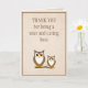 This wise owl card is perfect for your wise boss, supervisor, or manager! Option to edit the text of this card for a specific title/role/name, and add your inside message. The cute owls make an appearance on the inside of the card, as well as the front.