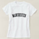 Check out this Manchester t-shirt! Are you from Manchester, United Kingdom? Do you have a friend or family member who loves Manchester, United Kingdom? If so, this "Banner" t-shirt is exactly the gift that you're looking for! The design features "Manchester" in arched black lettering in the classic College font.