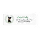 A portrait of an adorable black and tan Manchester Terrier Dog inside a pale green leaf watercolor eucalyptus wreath is the feature on the left side of these return address labels. Choose "Edit this Design" to change the green and black text to your own.